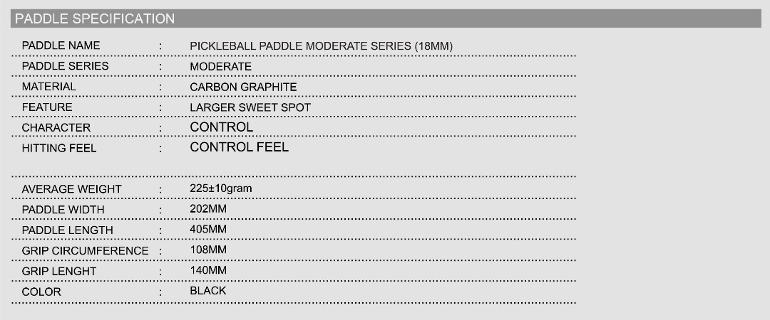 Vợt Pickleball Felet Moderate 18mm – Black Chính hãng